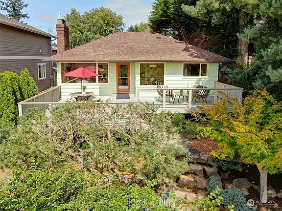Sweeping views of South Puget Sound, privacy, magical gardens and a beautifully maintained bungalow with 1940’s charm intact. Oak & fir floors throughout the main level, wood burning fireplace & art deco style wood trim. Formal dining & living areas open to spacious view deck and offer spectacular views and light! 2 bedrooms & full bath on the main level. Full basement with finished living space, 2nd fireplace, potential 3rd bedroom & rough 2nd bath as well as storage & laundry. Enchanting landscape offers many secluded outdoor rooms. Relax or play in the very private front yard. Well-built garage with French doors opens to deck & offers so many possibilities! Updated systems, skylights, excellent South Gatewood neighborhood. A rare find!