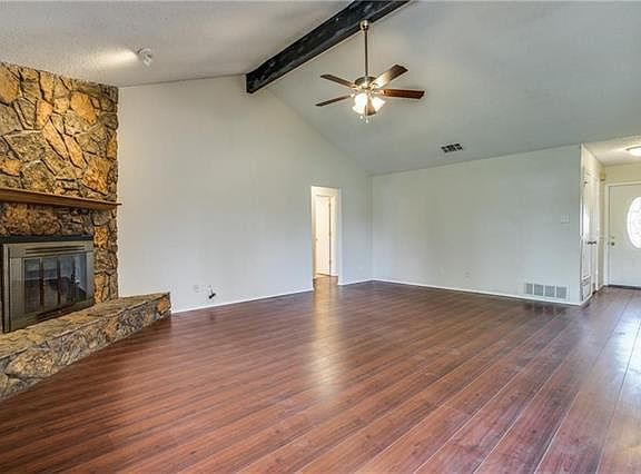 Charming home consist of 3 bedroom 2 full bathrooms and 2 car garage in established neighborhood is a must see! Stunning stone fireplace with vaulted ceiling and granite counter tops give the house beautiful character to make your own. Large backyard with dog run is excellent to entertain family and friends. Home is conveniently located near highways and shopping. New 40 year shingle roof installed April 2018.Refrigerator and Stove included with house
