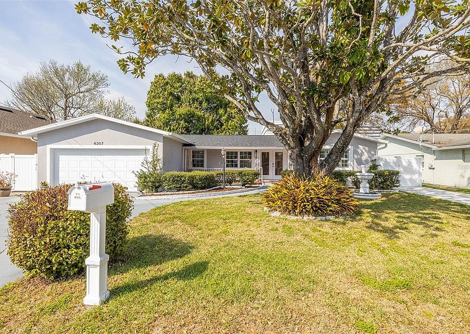 **BACK ON THE MARKET BUYER FAILED TO OBTAIN FINANCING!**Here’s your chance to own a beautifully updated home in the Westshore district on two lots w/income producing potential. This 1960’s block home has been meticulously maintained and features a split floor plan. Enter the home through double doors into the large great room w/updated flooring, 5.25” baseboards, plantation shutters and bright white paint. In the eastern side of the home, you’ll find two bedrooms w/laminate flooring and large closets. The guest bathroom sits in between them and is completely remodeled w/a luxurious vanity w/dual sinks, plank tile floors and a step-in shower. Back to the center of the home you’ll find the stunningly updated kitchen w/stainless steel appliances, quartz countertops, white shaker cabinets, custom pendant lights, plank tile flooring, tile backsplash, recessed lighting and a large peninsula w/room for 5 bar stools. Off the kitchen is the generously sized dining room ideal for large gatherings. The west side of the home is where you’ll find the master suite. The master bedroom features plank laminate flooring, plantation shutters and a roomy walk-in closet. The master bathroom has been completely remodeled w/a gorgeous marble topped, dual sink vanity, plank tile floors, shower/tub combo w/rain shower head and custom wall tile. Home has an interior laundry room complete w/washer/dryer and utility sink. If this wasn’t enough for you this home also has income producing potential! The garage has been converted to an exquisitely updated 1-bedroom and 1 bathroom in-law suite/Airbnb space. The bedroom/living space features plank flooring, 5.25” baseboards, crown molding, mini-split AC, kitchenette (sink, microwave, mini-fridge) and queen size bed w/all furnishings included. The dazzling bathroom has large custom plank tile flooring and walls, pedestal sink and a step-in shower. In-law suite can be accessed from inside the home or from an exterior side door for private access. Wait there’s more….This home sits on two picturesque lots. The front is beautifully landscaped and features an active water fountain, front porch and 2 separate driveways w/room for plenty of cars. The rear of the home finds the huge 18x11 screened lanai and large fenced backyard w/many custom planted trees including; a giant mango tree, guava tree, bamboo and even a staghorn fern. The backyard has a huge shed w/electric and multiple parking pads so bring your RV or boat. There’s also a carport w/room for one car. Roof was replaced in 2021 and home has a water filtration system and high efficiency water heater. This home is in an ideal location minutes from I-275, Tampa Airport, International Plaza, Raymond James Stadium, George M. Steinbrenner Field and tons of restaurants.