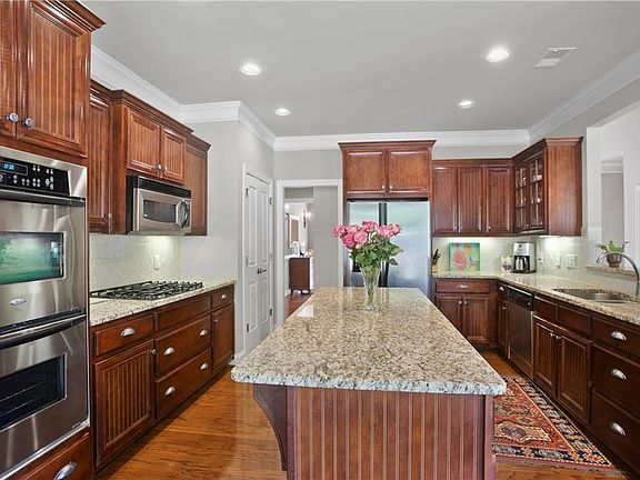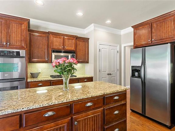 - Kitchen Features: Breakfast Bar, Cabinets Stain, Pantry, View to Family Room, Stone Counters, Kitchen Island