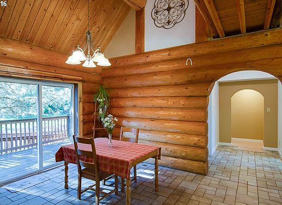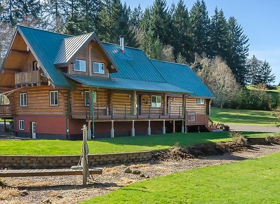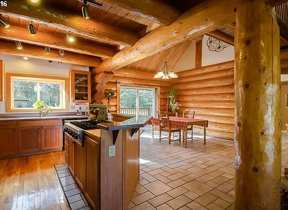 Unlimited possibilities! Beautiful log cabin with 3 bay shop, barn with tack room, kennel, playground, mature timber, pasture, wonderful landscaping, year round creek and privacy! Gourmet kitchen with viking 6 burner gas range, double ovens, custom cabinets, and solid surface countertops. Office/ Library with built in cherry cabinets. Main level handicap accessible including full bath. Skylight for bright natural lighting. Covered porch. Private with wonderful views. Multiple small business potentials.