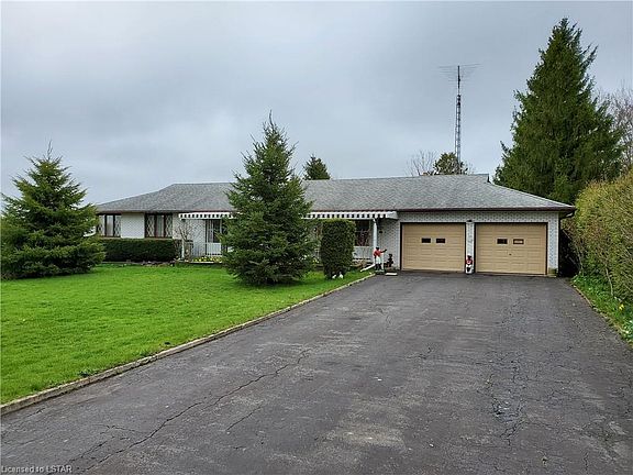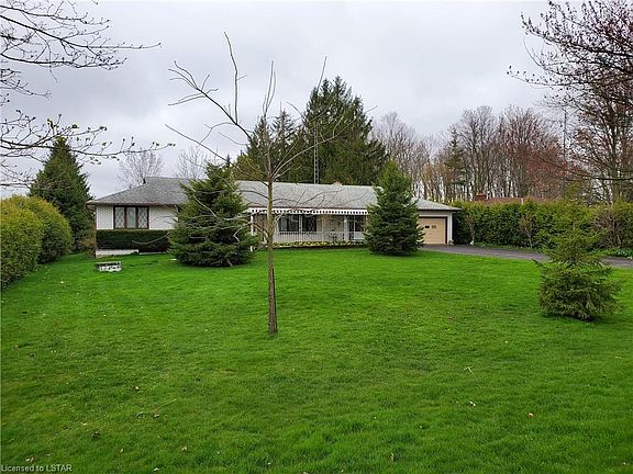 Sprawling is the best word to describe this brick ranch situated on nearly an acre of country property conveniently nestled between London and St.Thomas. First sale since it was built in 1975. Over 1800 sq ft of space for you to re-imagine your country escape. Wide hallways and spacious elbow room throughout. Two over-sized patio doors from the dining room and main floor family room to large patio area. Two-car attached garage with third door for rear yard access. Long double paved driveway. Yard has mature trees and fruit trees with more than 400' depth. Great shed/workshop in back yard. Immediate possession available. No warranties expressed or implied. Natural gas available at road. Septic pumped 2017.