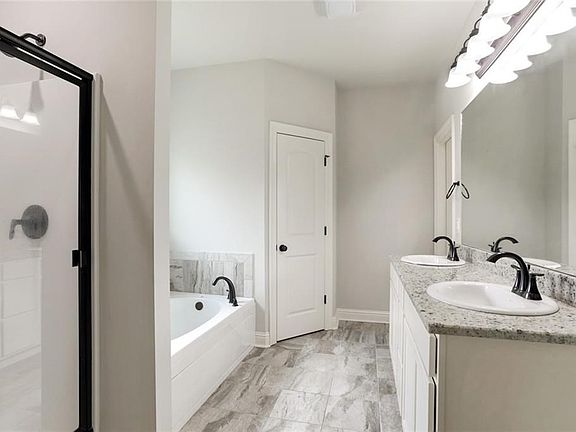 Immaculate & Move-In Ready Today! Elegant entrance, high ceilings and large open floor plan with many upgrades including blinds, LED lighting package, computer nook, separate dining & breakfast area, AristoKraft painted cabinets & stainless appliances. Refrig w/ French doors. Ceramic tile floors added in LR/hall. Granite counters in kitchen & baths, tile floors in all wet areas & primary has double sinks, 2 closets, garden tub & separate shower. Enjoy a tankless gas water heater, landscape & large yard!