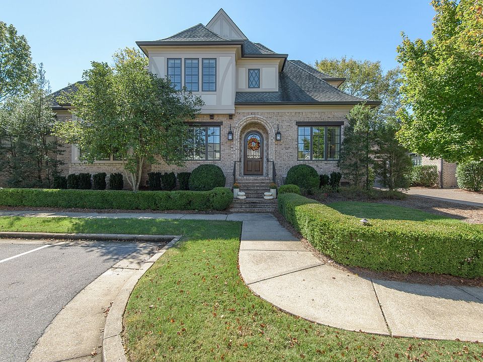 Elegant English Tudor inspired home on level lot at end of quiet street in the heart of Green Hills. Rare opportunity to live in this boutique neighborhood built by luxury builder, Castle Homes. Terrific floor plan & flow. Green Built & Energy Star Compliant! 1st floor owners suite, well appointed kitchen w/ high end appliances, butlers pantry, open concept great room w/ fireplace. 3 bedrooms upstairs each w/ private bath, dedicated study alcove, bonus room w/ wet bar. Covered porch w/ fireplace