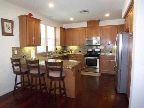 Step into this beautifully appointed 2 story home in the Mosaic at Gale Ranch Community. Living room with built-in shelving, dining room has a built in China hutch, large kitchen with granite slab counters, stainless steel appliances, breakfast bar, and pecan wood cabinets. Hardwood floors throughout the downstairs and upgraded carpeting and tile upstairs. All bedrooms are located upstairs. Master Bedroom suite features dual sink vanity with granite counters, soaking tub and separate shower; the guest bedroom has its own separate bath and there are two additional bedrooms with a large hall bath with dual sinks, granite counter top vanity and a separate tub with shower. The home comes with dual zone A/C and heating, upstairs laundry room complete with front load washer and dryer and storage cabinets. The attached 2 car garage is finished with beautiful cherry wood cabinets and an epoxy painted floor. Close to the highly rated schools of the Dougherty Valley, shopping, hiking, and community pool. Professionally managed by Craig Property Management Min. 1 yr lease or longer possible, No Smoking, No Pets and No Section 8. Please No calls or texts before 9 am or after 7 pm. Tenant pays for all utilities, Owner pays HOA dues for access to pool for tenant.