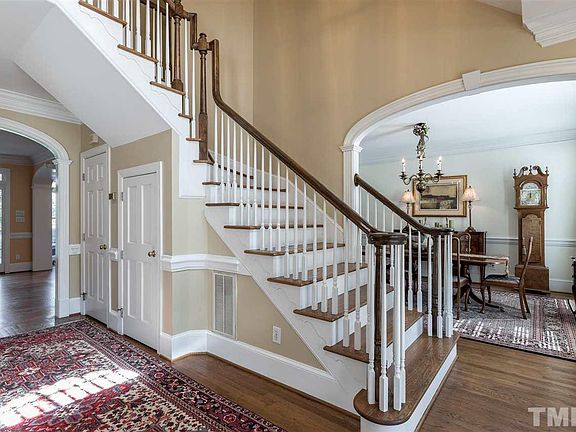 Beautiful, Truly Classic, Olde Raleigh Traditional Home. Inviting Large Foyer, Wide-Arched Molded Entrances into Formals. White Corian KIT w/Wood Island. FR w/gas FP. Mahogany Paneled Gentleman's Study w/Coiffured Ceiling & FP. Lovely Sunroom, First Flr Guest Suite. Generous Master & Secondary Bdrs, one w/wonderful adjacent playroom. Bonus. Fin 3rd Flr- Ideal for Recreation/Teenagers. Circular Drive. Only Gated Community in Ral. City Limits. Enjoy 3 Lakes, Indoor & Outdoor Pool, Clubhouse,Tennis. See AOR