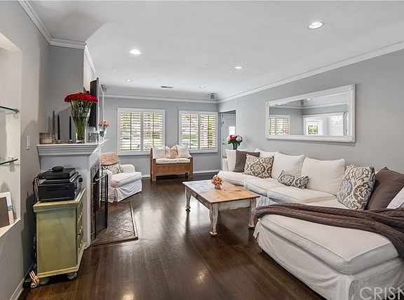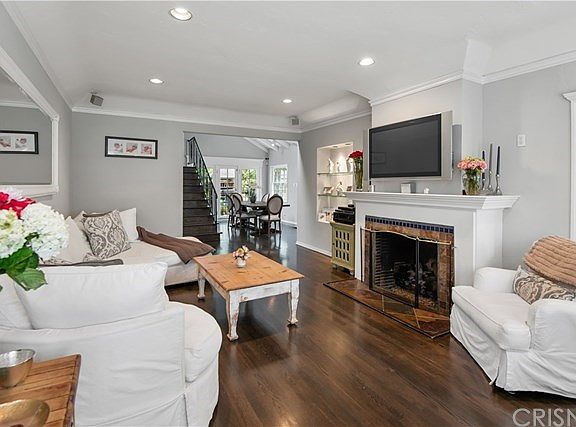 Located on a wonderful tree lined street South of the Boulevard, this expanded picket fence traditional radiates character & charm. The inviting 3 bedroom 2.5 bath residence has been remodeled with careful attention to detail. An abundance of natural light floods the home, which is further enhanced by a wood floors, crown moldings, plantation shutters, recessed lighting, numerous built-ins and a great indoor/outdoor flow. Interior features include a living room with fireplace, a formal dining room with vaulted ceilings and both French & Dutch doors to the outside, a cheerful breakfast room with window seat, and an oversized galley kitchen with granite counter tops, bead board cabinetry, subway tile backsplash and stainless appliances that include a 5 burner cook-top & double oven. Two generously sized secondary bedrooms complement the spacious second floor master retreat with fireplace, balcony with ground level access and a fantastic full bath with dual sinks, separate shower and tub. Accessible from the rear grounds is a large bonus room which would be great as a playroom, office, or gym. Designed for enjoying an outdoor lifestyle, the lush grounds feature mature landscaping, a huge flagstone patio, sparkling pool with waterfall, and a bark covered play area. Other amenities include a lovely powder room, ample storage options, dedicated laundry room, great curb appeal, and a phenomenal location close to the shops and restaurants along Ventura Boulevard.