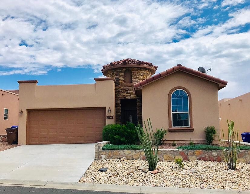 Great Sonoma Ranch property in a secure gated community. Rental includes access to the community pool and sandy volleyball area. This is a split floor plan with 3 bedrooms and 2 baths convenient to medical, shopping, golf, gym, hiking and dining. Has an amazing view of the mountains from the back yard with low maintanance landscaping. Has a huge master bedroom that boasts double sinks with granite tops, walk in shower, walk in closet and separate toilet room. Kitchen has granite counter tops, pantry and breakfast bar. Generous laundry room that includes a washer and dryer. Comfortable refrigerated air conditioning. 2 car garage with opener. This home is a must see and wont last long. Small pets might be considered with non refundable pet deposit. Tenants pay their own utilities. Owner will provide quarterly pest control.