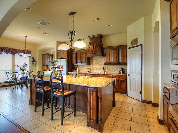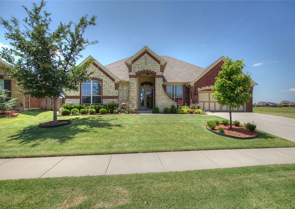 Attention to detail evident in the stunning, well-maintained Carrington Place home! You will find built-ins and extra storage at every turn including a beautiful buffet in the dining area. this efficient floor plan offers 4 bedrooms and three full baths plus a large study. The kitchen is anchored by an granite island that opens into a large living area with soaring ceilings and a stone fireplace flanked by built-in bookcases. Beautiful wood floors greet you at the entry and run through the main living areas. Spacious master bedroom and bath with exceptional master closet. Two-car tandem garage will hold a small third car or provides great storage for recreational needs. Large laundry room with sink and folding counter. Extra large back yard with over-sized patio where you can relax and view the lights of OKC in the evening. This home will not disappoint!