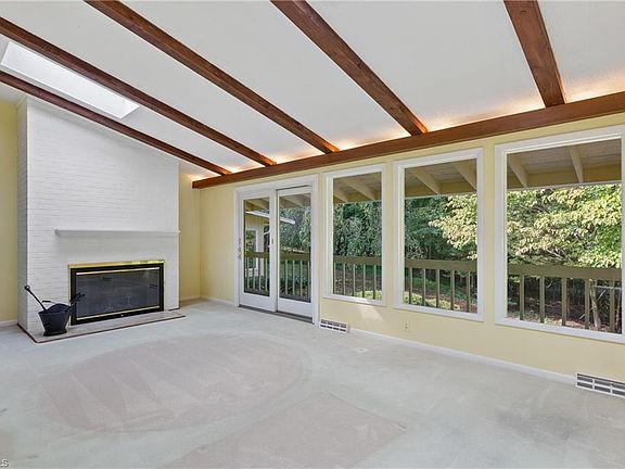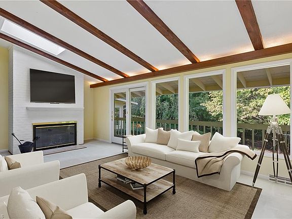 Wonderful Clemmons location! Contemporary 4 BD/2.5 BA home nestled on large lot on a street of lovely homes in well-established neighborhood. Floor plan offers great potential w/open kitchen to keeping room, sliding glass doors to covered deck that extends length of home. Other features include skylights, wood beams, 2 brick fireplaces, brick patio terrace areas & sunroom. Kitchen has solid surface counters with built-ins for pantry & storage. All appliances convey incl refrigerator/washer/dryer. Primary BD has private sunroom perfect for relaxing or a personal office w/private entrance and great view of wooded back yard. Spacious LR w/FP and formal dining. LL has large den/playroom/or mancave w/FP, half-bath & private entrance. There is also unfinished space for future expansion, storage or hobby room. Two-car oversized garage. Convenient location to I-40 access for commuting, shopping, restaurants and Tanglewood Park! Zone 7 Blue Schools!