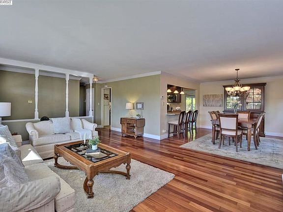 Beautiful Castro Valley Home Features- 3 Bedrooms, 2 Bathrooms, 1760 Square Feet of Living Space, Formal Living Room with Brick Fireplace, Wood Flooring and Picture Windows, Formal Dining Area, Amazing Kitchen with JennAir Stainless Steel Gas Stove, Granite Counters and Tile Back Splash, Breakfast Bar & Lovely Pendent Lighting Accents and Tile Flooring, Master Suite offers Sliding Glass Door to Patio, Updated Bathrooms, Large Closets, Family Room, 2 Car Garage with Ample Storage, Newer Air Conditioning Unit, Corner Lot, Inviting Backyard Patio & Gardens to Enjoy with Family and Friends plus Amazing Views!