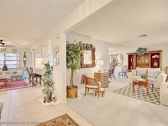 Absolutely Pristine, turn-key Fully Furnished, and move-in ready home located in one of the best neighborhoods that Sebring, FL offers - Sun N Lake Estates! 2 Bedrooms boasting generous amounts of closet space on a split floor plan, 2 Spotlessly clean bathrooms, amazing 32'x12' screened-in porch overlooking the private back yard, and attached 2 Car Garage situated on over a 1/4 acre lot adorned with mature oak trees. Enjoy both a front living room and back family room for entertaining guests with the kitchen conveniently centrally located between these two rooms. Both The formal dining room and back family room incorporates sliding glass door access out to the back porch. The master bedroom boasts a generously sized walk-in closet and a fully tiled walk-in shower in the ensuite bathroom. The utility room inside the home with washer & dryer included in the sale provides for easier laundry days out of the heat! So many new upgrades completed including a new water heater in 2014, a new HVAC system in 2013, and a new roof in 2022! Beautiful, neutral colored carpet and tile flooring throughout the entire home. No extra work is required to move in and enjoy this stunning property - it is truly one of a kind and ready to be called home! The Sun N Lake Estates of Sebring community offers beautiful championship golf courses, a family pool, tennis courts, a playground for young children, and an excellent restaurant for an enjoyable meal out!