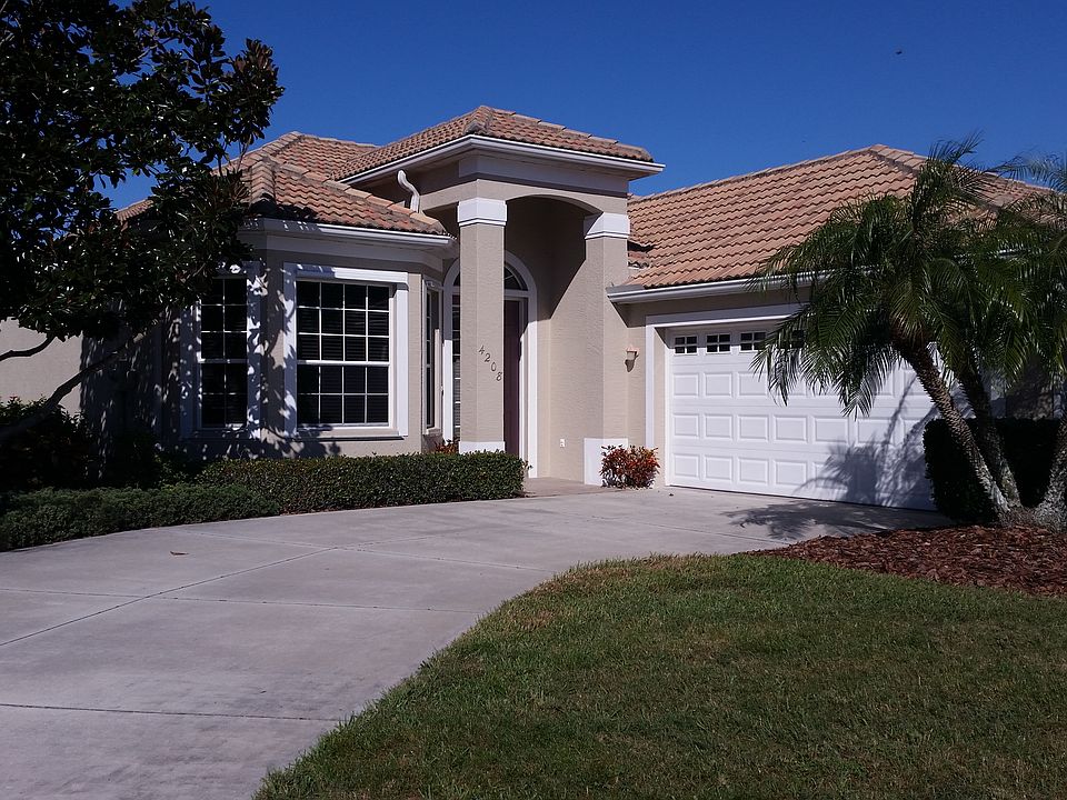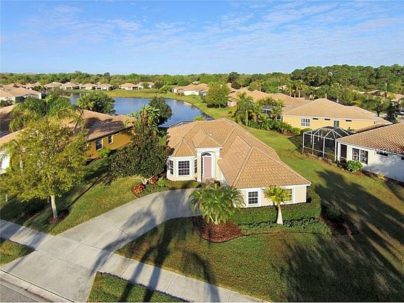 Beautiful lake views from this 3 bedroom plus den, 2 bath home in highly desired Villa Rosa. A private gated maintenance free community with a resort style pool, spa and clubhouse overlooking the lake. Enjoy an exercise room at the clubhouse for your fitness needs. This light and bright home features an open floor plan, plantation shutters and many windows to allow natural sunlight. Lake views from the kitchen, breakfast nook, master and raised ceilings in the great room. Nice neutral tile throughout the kitchen and great room. This property offers a covered over-sized lanai with 8 foot high sliding glass doors and is situated on a large wide lot. Just a short walk to park next door which offers nature trails, playground and picnic areas. Close to beaches, downtown and shopping. Important features include steel reinforced concrete block construction, marble windowsills and tile roof. Plenty of room for a pool. Seller can close quickly.