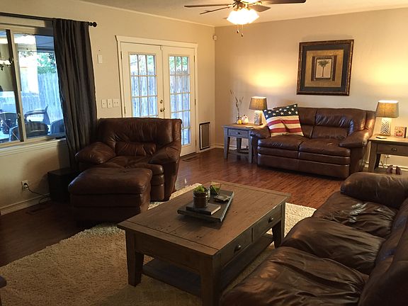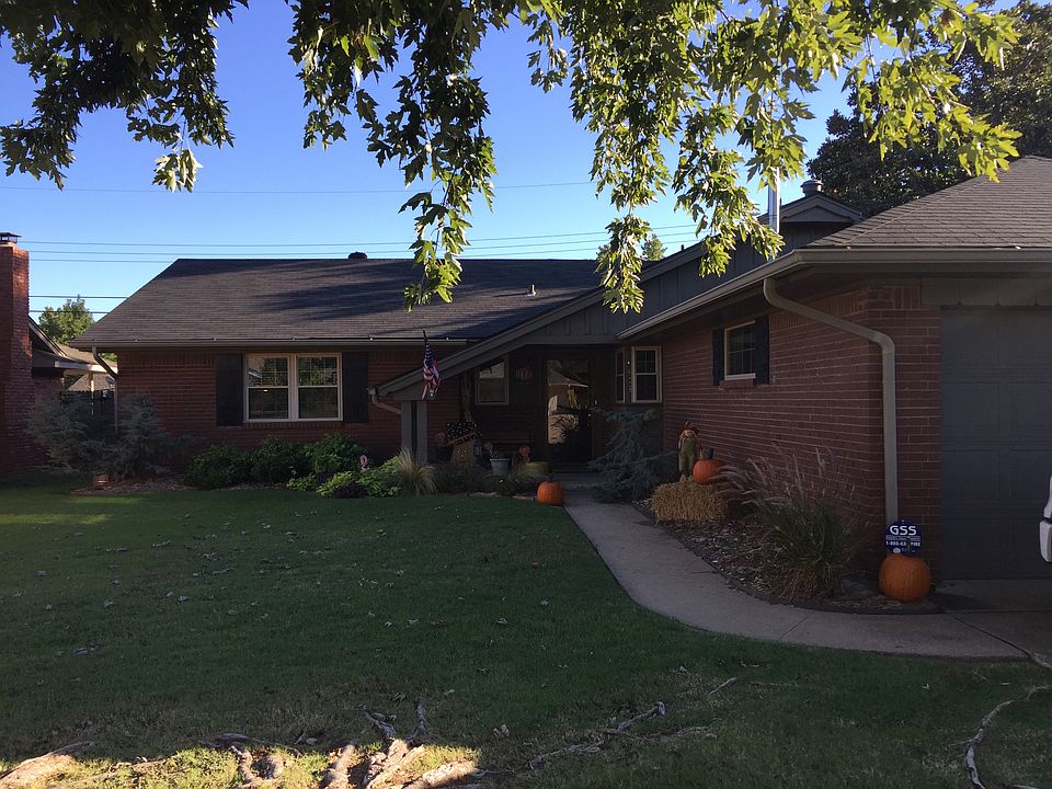 This home will absolutely wow! A Ranch-Style home completely remodeled with wood floors, exposed brick and French doors. Beautiful open kitchen with stainless steel appliances, glass tile backsplash and granite overlay countertops. Amazing large patio with gas fire pit perfect for entertaining. Three bedrooms, large closets, two bathrooms and two car garage. Brand new AC unit and furnace, windows, storm shelter and too many other updates to list! You must see this one, it won't last long! Listing Agent: Jenifer Standish