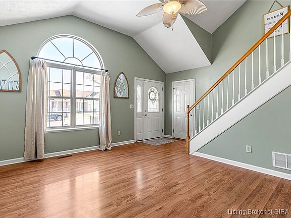 LOCATION, LOCATION, LOCATION! Seconds from Veterans Parkway in Jeffersonville, you'll find this charming 3 bed 2 bath home with a partially finished basement. The main floor features a living room with vaulted ceilings and tons of natural light. Enjoy the updated eat in kitchen with an island, pantry, and patio doors leading outside. The large main bedroom has ample closet space and full bath. Upstairs offers 2 large bedrooms with another full bath! Head downstairs to the partially finished basement with a bar area and family room, perfect for entertaining! Large storage room with less than 2-year-old sump pump! Outside, a large FENCED back yard with a deck off of the kitchen area and a shed! 2 car garage! Roof is under 5 years old; HVAC is under 8 years old; Water heater is less than 2 years old! This home is move in ready and available for immediate possession! Don't miss your opportunity to own this charmer in the PERFECT location just seconds from I-65, shopping, dining, and entertainment!