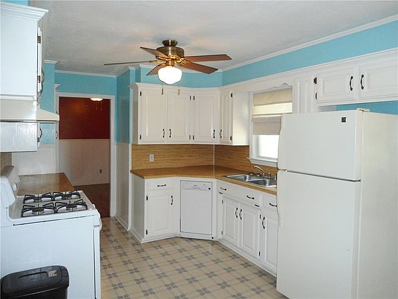 Perfect for 1st time home buyer or retirement. Refinished hardwood floors, repainted thru-out. Recent roof & vinyl windows. Cooled sun room is not included in square footage. Move-in ready with range & fridge to remain with acceptable offer. Garden spot, fenced backyard & storage building. Home to be sold As-Is