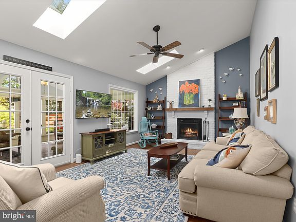 Tucked in a quiet cul-de-sac, this beautifully maintained colonial offers nearly 4,000 square feet of inviting living space, an incredible wooded setting, and thoughtful updates throughout. Highlights include a fully renovated primary bath, gleaming hardwood floors, a fenced backyard retreat, and a screened porch that looks out over the serene landscape. This home welcomes you with a light-filled foyer that sets the tone for the warmth and elegance found throughout. To the right, a private study with French doors provides a quiet workspace, while to the left, the formal living and dining rooms impress with rich crown molding and a gracious flow ideal for entertaining. The heart of the home is the expansive kitchen, where a center island, stainless steel appliances including a gas range with a warming drawer and convection microwave, and a spacious pantry cater to both everyday meals and special gatherings. The adjoining breakfast area looks out over the peaceful backyard, and just beyond, the family room stuns with a vaulted ceiling, skylights, and a floor-to-ceiling white brick wood-burning fireplace. A glass-paneled atrium door opens to the screened porch with a cathedral ceiling, a perfect perch for enjoying the natural beauty that surrounds the home. Upstairs, hardwood flooring runs through the hallway and into the primary bedroom featuring a soaring cathedral ceiling, a sitting area, a walk-in closet plus a second closet, and a luxurious renovated en-suite bath. This spa-like retreat includes a double vanity, freestanding soaking tub, and jetted tile shower with frameless glass. Three additional bedrooms share a well-appointed full bath. The finished lower level adds even more living space with a family room, a bonus room with an attached full bath, and a large storage room that also offers space for use as a workshop. Walkout stairs lead to the fenced backyard where you'll find a beautifully hardscaped stone patio, along with a second stone patio with firepit connected by a charming stone walkway perfect for relaxing or entertaining under the stars. Additional updates and features include new windows throughout, basement carpeting, storm doors, ceiling fans, a natural gas line brought to the home, and key appliance upgrades such as the washer, dryer, refrigerator, dishwasher, and gas range. The chimney has been enhanced with a stainless steel insert and cap, and the backyard has been thoughtfully fenced and landscaped for beauty and privacy. Nature lovers will appreciate the nearby trails, while commuters will enjoy easy access to BWI Airport, I-95, and major hubs including Baltimore and Washington DC. With shopping and CPRA pool access close by, this home offers a seamless blend of peaceful retreat and everyday convenience.