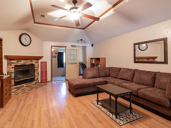 Nice curb appeal on a quiet street in Canyon ISD. Spacious living area with tray ceiling and wood burning fireplace. Light and bright kitchen has granite counter tops with ample storage and updated appliances. This home has a great layout and has been well maintained. The enclosed patio could be used as an office or man cave. The isolated master bedroom is huge and has a great master bathroom with double sinks. Additional bedrooms are a great size. The backyard is beautiful and has a 8ft privacy fence with a concrete area that is great for outdoor activities. The rear entry drive to the garage features plenty of room for extra parking!!
