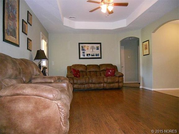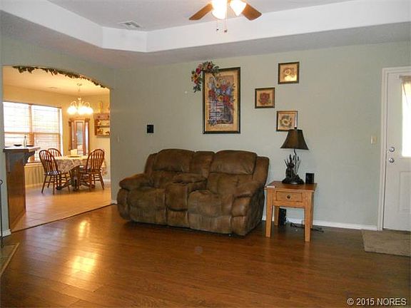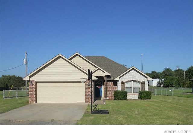 Located in Cherokee Nation, this Mother-in-Law floor plan home offers nice living room with gas log fireplace, master bath with dble vanity, huge walk in closet, covered oversized patio, 24X30 shop at back of property with rear access & low utility bills!