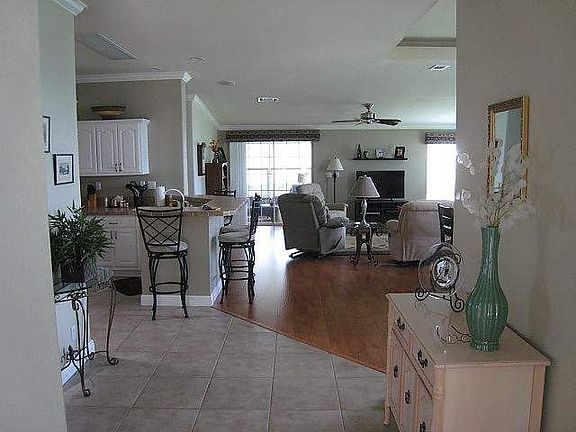EXCEPTIONALLY WELL MAINTAINED HOME!!! Large lake view 2-bedroom 2-bath manufactured home including a lovely Den just off the Entryway. The Den has a pullout sofa for extra guest coming for Christmas along with 2 lovely French doors for privacy. Lots of living space in this Amazing home approx. 1,800 sq ft with an additional sq Ft of lanai living overlooking the water. The home has a nice open layout with the living room right off the kitchen. Kitchen is large and open. Plenty of cabinets and if that's not enough there's a large pantry in the corner. . The dining area has a lighted Trey ceiling. Beautiful.. The master bedroom is huge and beautiful with a walk in closet, has a large en suite bathroom walk-in shower area plus another large closet in the bathroom. The oversized double garage give you plenty of room for your vehicle and golf cart, plus lots of storage space. This home is shown by appointment only. Monthly lot rent is approximately $1,025 which includes trash pickup, ALL the amenities of the community for your resort lifestyle of living. A large club house, 2 pools, tennis courts, pickle ball, shuffle board , and the list goes on. Each month the community holds events such as potluck dinners, bingo, dances, exercise classes, card games, shuffleboard and bocce ball, socials, planned trips and activities, and much more. All fun and exciting ways to meet and make new friends! A vacation 365 days a year! And you could be living it! You'll never get tired of saying , It's just another day in paradise... This home is located in one of the most vibrant and attractive 55+ communities in Florida, and Tanglewood is meticulously maintained. Whether you're an active or quietly retired there's something for everyone! Centrally located to popular attractions, . 90 minutes to each coast or Orlando. You will never be bored! Crown Molding throughout the home tops off the other amazing features of this Fabulous home. CLOSING ON OR BEFORE APRIL 1, 2023 Disclaimer All listing information is deemed reliable but not guaranteed and should be independently verified through personal inspection by appropriate professionals. We cannot guarantee or warranty the accuracy of this information or condition of this property. The buyer assumes full responsibility for obtaining all current rates of lot rent, fees, and pass-on costs. Additionally, the buyer is responsible for obtaining all rules, regulations, pet policies, etc., associated with the community, park, or home from the community.