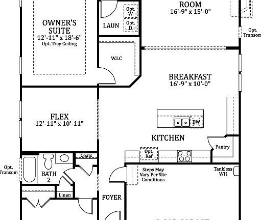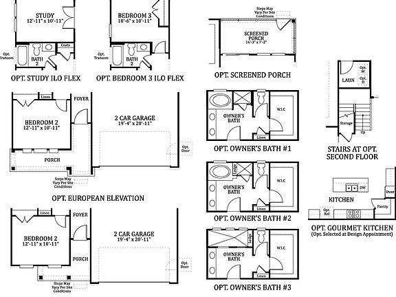 True one story living with all the space you need and none that you don't! So light and bright, this open floor plan transitions seamlessly from kitchen to casual dining area to family room to a generous covered porch. Enormous owners' suite offers his & hers walk in closets and a luxurious walk-in shower. The lovely Oakmont plan also offers the option to convert the flex room into a third first floor bedroom or study! Or, if you still want more space, opt for adding a second story! This plan features options for an unfinished second story; a second story game room, or an additional upstairs bedroom, bathroom, and game room.
