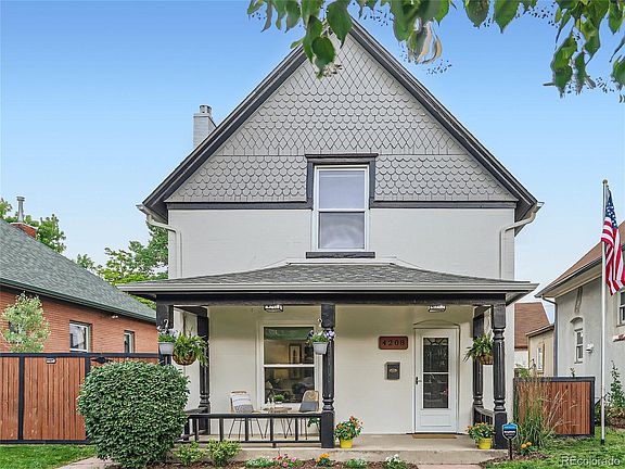 Welcome to this charming 3-bedroom, 3-bathroom Victorian home, located in the highly sought-after Sunnyside neighborhood. As you enter the home, you are greeted by a warm and inviting family room, complete with a cozy gas fireplace and original brick wall, part of its historic charm. The functional layout of the house offers an updated eat-in kitchen with stainless steel appliances and gas stove. The main level also features an office, perfect for those working from home, a convenient mudroom/laundry room, and a half bath, providing practicality and convenience for everyday living. Upstairs, you will find three spacious bedrooms, each filled with an abundance of natural light, one of which is a primary bedroom with an en-suite bathroom and an additional bathroom. Situated on a large lot, this property boasts a covered front porch that adds to the home's Victorian charm. The fenced-in, spacious backyard offers ample room for outdoor activities and includes a covered patio area with lighting, perfect for entertaining guests or enjoying a quiet evening outside. The exterior of the home has been recently painted, and newer gutters/soffits have been installed, ensuring a well-maintained home, as well as updated landscaping in front and back. For additional storage needs, there is a partially unfinished basement and a 2 car, oversized detached garage. Conveniently located only two blocks from the Sunnyside strip, you'll have easy access to a variety of restaurants and retail shops. Additionally, this home is a short distance away from coffee shops, breweries, and other popular dining establishments, ensuring a vibrant and diverse lifestyle. With its close proximity to I-25, downtown, and the Highlands and LoHi neighborhoods, this home offers excellent connectivity to various parts of the city.