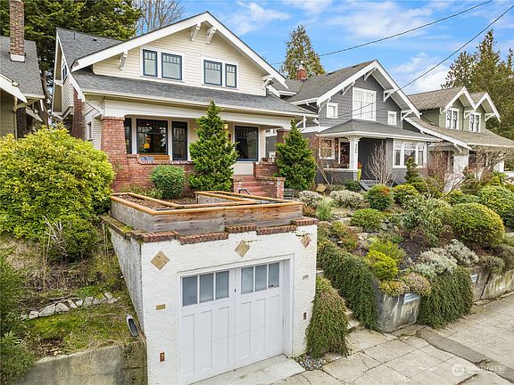 Like a quintessential Seattle home straight from a movie set, this 1911 craftsman sits high above the street for privacy & curb appeal. Original architectural details start with the rocking chair front porch & carry throughout; intricate woodwork, built-in cabinetry & charming details.  Extensively remodeled in 2014 and 2017.  Main floor boasts an updated kitchen, dining rm & spacious living rm.  Upper level features primary plus 2BRs/1.75BAs. Spacious basement w/ cozy family rm, 4th BR & full bath. Serene backyard is private & quiet with mature landscaping & custom decking.  Charming workshop w/ electricity for hobbies/play.  Across the street from Wallingford Playfield, a stone’s throw to fantastic restaurants, shopping & Gas Works Park.