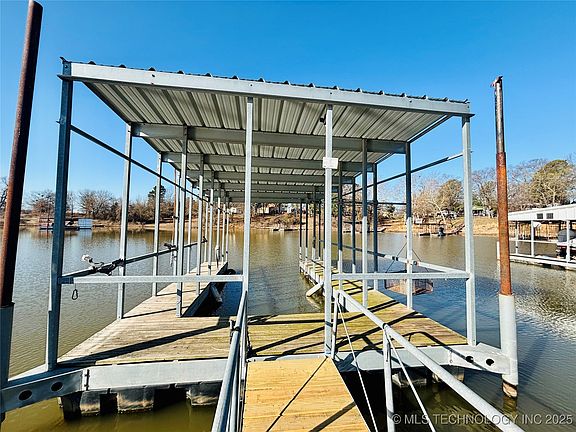 Upstairs, you’ll find even more room to spread out—extra bedrooms and another full bathroom for maximum comfort and privacy. Plus, say goodbye to lugging laundry up and down stairs, thanks to the super convenient laundry chute! Step outside, and you're in for a treat. The large outdoor deck is perfect for soaking up the sun, hosting a BBQ, or simply enjoying the peaceful atmosphere of Lake Eufaula. Not to mention, there's a carport and workshop ready to take on any project you can dream up. Now, for the showstopper: your very own PRIVATE COVERED BOAT DOCK on the sandy shores of Lake Eufaula! Whether you’re into boating, fishing, or just watching the sunset over the water, this is lake living at its finest. This home may need a little TLC, but with a bit of love, it can be your perfect lake retreat, vacation getaway, or the ideal investment property. Don’t miss out on the opportunity to make this gem your own—come see it today and start living the lake life!