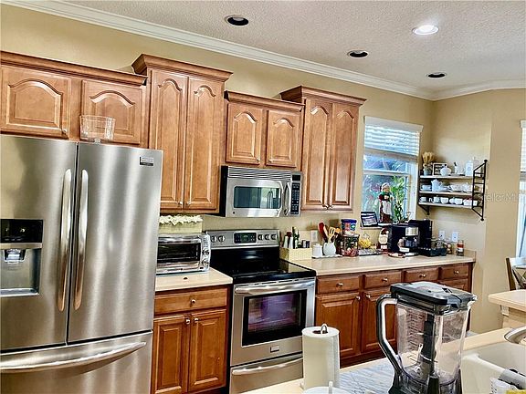 • Interior Features: Ceiling Fans(s), Eating Space In Kitchen, Master Bedroom Downstairs, Stone Counters, Crown Molding, Solid Wood Cabinets