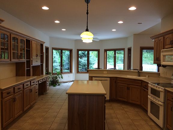 Family friendly home with interesting architecture and very large rooms. The main level has a master bedroom and bathroom with two sinks and a large walk-in closet. The living room has high ceilings and tall windows looking out over the wooded backyard. There are two dining areas... one in the octagonal shaped area by the kitchen and the other formal dining room in the front of the house. A large office and the laundry room are also located on the main level. The kitchen has a brand new refrigerator, double stove, new microwave and new dishwasher. The second level has three large bedrooms, two with walk-in closets, and two full bathrooms. The walkout basement has a very large play area, a full bathroom, nice bedroom and a large storage area. The three car garage has enough space for extra storage. Flexible on lease terms. 1 year, 6 months, rent-to-own. Owner responsible for landscape maintenance. Tenant responsible for snow removal, water, electricity, natural gas, garbage removal and sewer. Flexible with pets, must be noted in lease and approved by owner. Additional deposit required.