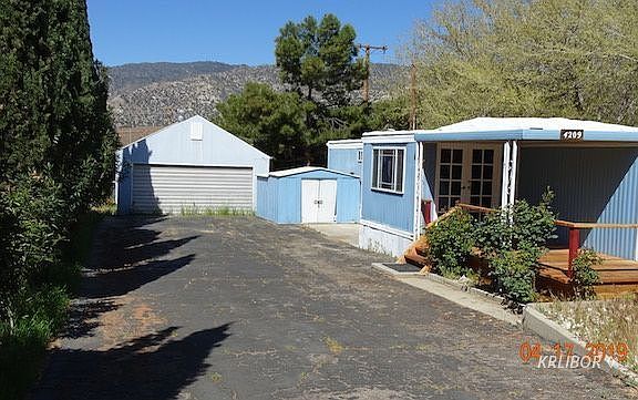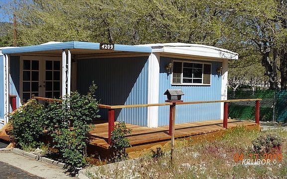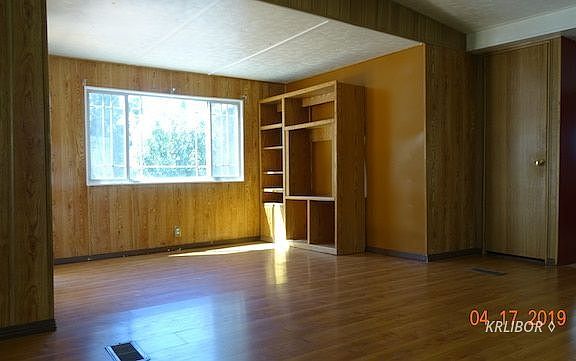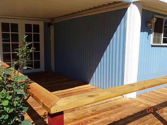 Cute single wide with living area pop-out. Laminate flooring. Dual- pane windows through out. French door to deck. Bedroom and bathroom on each end for privacy. Two storage sheds, one with washer and dryer hookups. Large garage, with a built in storage room. Extra large lot, room for RV, boat and all your other toys.