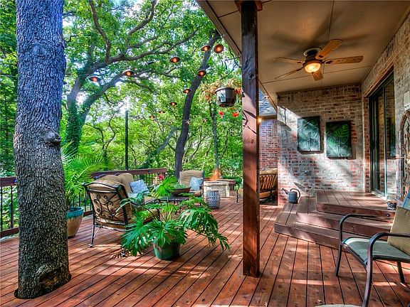 ENJOY ENTERTAINING INSIDE AND OUT! Beautifully updated 4 beds, 4 baths, 3 car home in sought after Oaktree Park Addition. Incredible outdoor oasis, featuring an enormous deck overlooking the backyard w/towering trees and lush landscaping. Awesome outdoor kitchen w/stone counter top, grill & sink. Cozy siting area with gas fire pit. Spectacular space for outdoor entertaining. Formal dining room w/ built-in hutch, opens into the elegant formal living w/fp and loads of natural light. Open living concept and mother in law plan. Hardwood flooring, extensive wood trim, granite counters, vaulted ceilings, floor to ceiling windows & built-in entertainment center grace the home. Master suite includes a sitting area, fireplace, huge walk-in closet, and a master bath that is unbelievable. 2nd bedroom is being used as an office. Upstairs are 2 beds w/private baths, w/huge walk-in closets and 3rd living area. Storm shelter in garage. You owe it to yourself to see! Call today for a private showing.