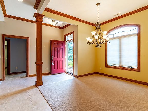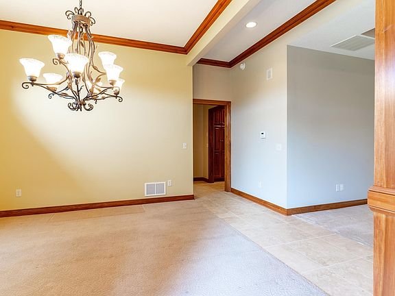 - Breakfast Bar, Tray Ceiling(s), Ceiling Fan(s), Walk-In Closet(s), Laminate Counters, Crown Molding, Entrance Foyer, Soaking Tub, Natural Woodwork, Open Floorplan, Split Br Floor Plan, Main Level Bedroom Suite, Formal Dining Room, Great Room, Custom Cabinetry