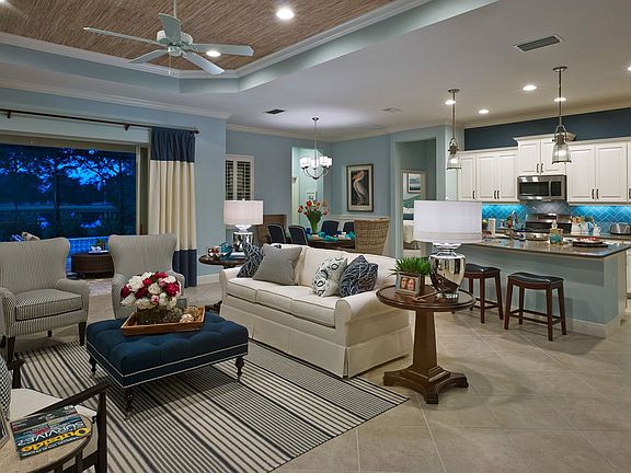 The Bright Meadow plan by Neal Communities is designed with those features most desired by homeowners.. The foyer entry leads to a spacious and open family room with optional coffered ceiling. An open kitchen is situated off this area, complete with large walk-in pantry, gracefully curved island and breakfast nook. French doors from the great room open to the den, or optional fourth bedroom. Glass sliding doors in the great room provide access to the roomy covered lanai. In the master suite you can choose to add a door from the master bedroom to the lanai. Besides the master bedroom with coffered ceiling the suite holds two walk-in closets and master bath with dual sinks, walk-in shower and water closet. Two secondary bedrooms each include a walk-in closet, and one of the bedrooms has the option of being crafted as a guest suite with private bath. Other options for the home include an outdoor kitchen wall and a pool bath on the lanai. Find out more about this beautiful home design at Indigo in Lakewood Ranch. Call to schedule an appointment!