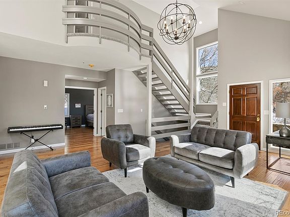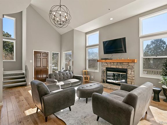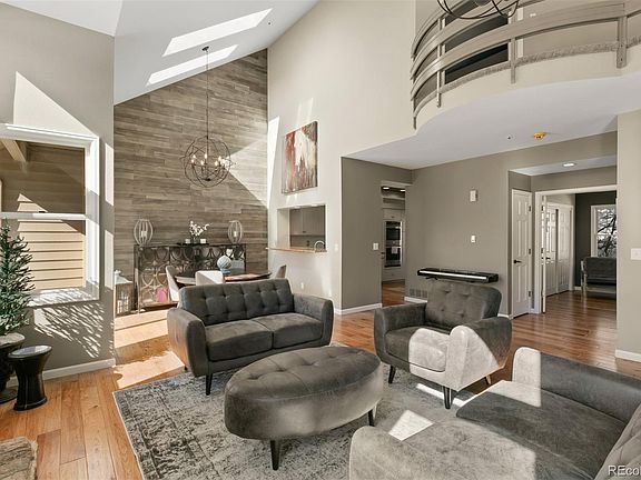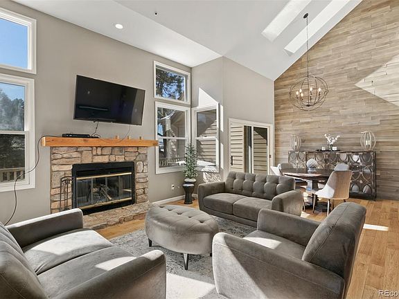 NEW REDESIGNED LARGE FRONT DECK WITH IRON RAILS! $20,000 PRICE REDUCTION and the BEST VALUE IN CASTLE PINES VILLAGE! Fantastic opportunity to own a 3 bedroom/3 bath low maintenance end unit townhome in this prestigious gated community. As you enter, there are gorgeous hardwood floors on the main level, vaulted ceilings with skylights,2 story gray shiplap wall in the dining room, a wood burning stone fireplace, the furnace was replaced a few years ago, newer lighting and paint throughout, and a large trex deck for entertaining.The kitchen features granite countertops with stainless steel appliances and an eat in kitchen. Each floor features its own bedroom and bath. Main floor and master bath have been remodeled with upgrades such as new faucets, granite countertops, sinks, paint, lighting and more. Master suite has its own private deck. A spacious laundry room has plenty of storage and a 2 car garage. Situated near open space, you'll enjoy beautiful views and a sense of tranquility. In addition, homeowners in The Village at Castle Pines enjoy over 13 miles of trails, tennis and pickleball courts, 3 pools, exercise facility, parks, picnic pavilions, and 24/7 patrol service. The neighborhood is also home to 2 of Colorado's best nationally rated private golf courses and clubs. The Castle Pines Golf Club is hosting the PGA tour in 2024! Golf and country club memberships can be acquired separately by directly contacting The Country Club at Castle Pines. Enjoy all Castle Pines Village has to offer within walking distance to the community pools and recreation center and easy access to the extensive trail systems and the Village Shops. ALL FURNITURE is negotiable!