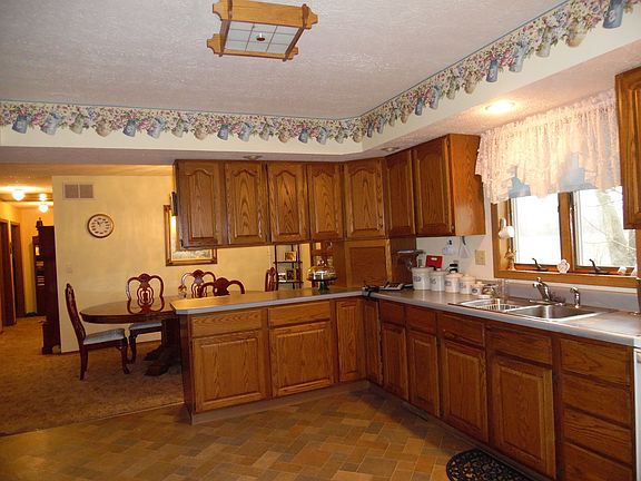 COMFORTABLE 3 bedroom ranch with basement sitting on 23.85 acres with several out buildings provides a great opportunity for a small farm. There are even several grain bins in addition to a 42x104 pole barn and large additional detached garage. The modern home has a large kitchen open to a family room area,dining room, sunny living room and 3 good sized bedroom as well as 2 full baths. The unfinished basement boasts a wood furnace in addition to the gas forced air furnace.Note: House, buildings & grain bins can be purchased for $179,000 with 3.65 Ac (m/l).