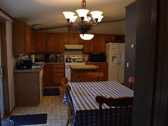 Come take a look at this affordable, newer, manufactured home, with 2 car detached garage, close to town, all on a little over an acre of land! Oh, did I mention that is sits on a poured concrete, walk out basement with 9 foot ceilings! Inside you'll find a nice sized living room, master bedroom with attached full bathroom, 2 additional bedrooms, another full bath, eat in kitchen, and main floor laundry. The basement is partially insulated and dry walled and is just waiting to be finished off. The home, well, and septic are only 12 years old(per seller). Call today!