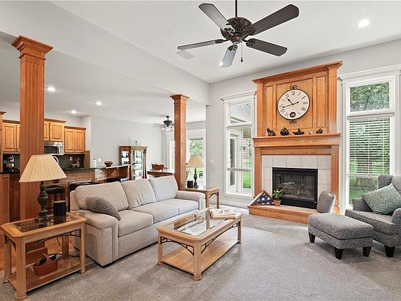 - Features: Carpet, Ceiling Fan(s), Fireplace