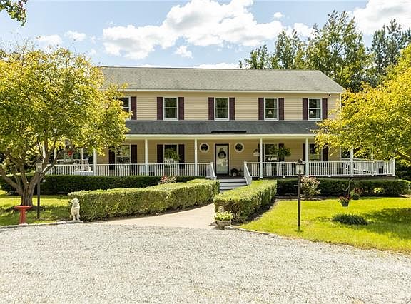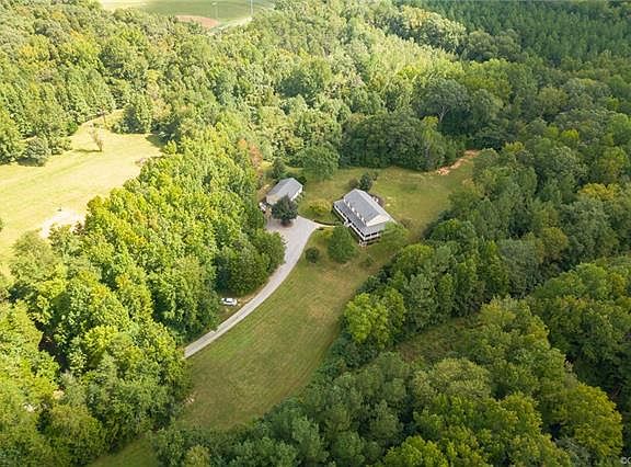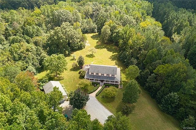 Custom Farmhouse on 10 private/peaceful acres in Powhatan yet only 20 minutes to Midlothian shopping/dining! Zoned agricultural so potential to have horses/livestock (confirm with county on permit steps). Spectacular covered wrap around country porch complete with rockers, porch swing, gliders and sitting area with ceiling fan. Inside notice the solid wood doors, trim and crown detail, custom newel post and cabinetry all made from specialty Honduran mahogany! Renovated eat-in farmhouse kitchen with farm sink, large center island with Taj Mahal quartz and bar seating, recessed lights, tiled backsplash, built-in desk/coffee bar. Family room with wood flooring, updated lighting and open to dining/kitchen. Dining room with wood floors and French doors to sitting area on porch. Den makes a great study/office/virtual classroom or art studio with sunny French doors to porch. First floor bedroom with access to full bath! Owners suite with sitting area (office or gym), walk in closet and spa-like bath complete with tiled shower, jetted corner tub, double vanities. Huge hall storage closet, full hall bath and 2 large bedrooms finish 2nd floor. Detached 2+ car garage with workshop.