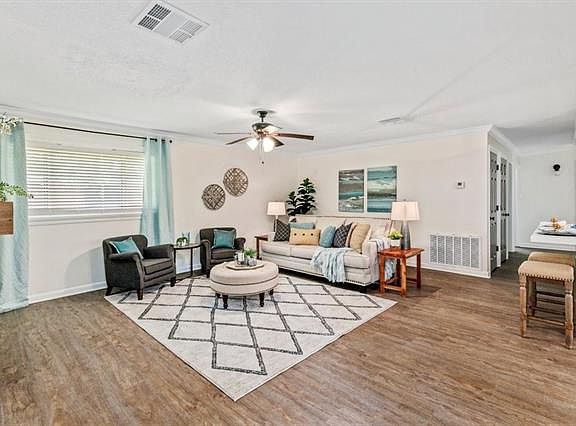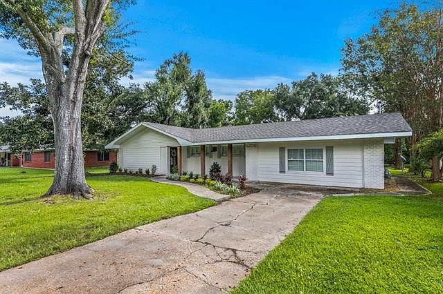 Must see this totally remodeled 4 bedroom 3 bath home conveniently located close to I-10 in Sulphur. Remodeled from top to bottom & looks brand new inside & out. Home has new roof, Hvac system, bathroom fixtures, interior and exterior paint, new flooring & lighting throughout. Open floor plan perfect for entertaining. Spacious living room has brick fireplace & open to kitchen. Formal dining area is large and could be used as second living area. Beautifully updated kitchen w/abundance of custom cabinets, new stainless appliances, quartz counters & eat-in island. Master suite features updated bathroom & walk in closet. There is 2 master suites both with totally updated bathrooms. This home has been designed w/nice neutral colors & wood look vinyl flooring throughout. Great curb appeal & freshly landscaped yard. Situated on large lot with beautiful mature trees . Flood zone x & qualifies for 100% rural financing. Seller is an owner/agent. This lovely home is move in ready and will not last long. Seller reserves curtains and rods.
