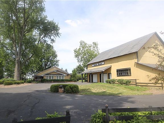 Beautiful, peaceful, iconic 5 acre property with solidly built ranch style home away from the city yet short drive to modern conveniences. Very spacious 3400 sq ft single level home w/4 BR/3BA's, large great room, formal dining room, sunroom, master suite, home office & 2 kitchen areas. Huge 27x17 covered back porch to enjoy the views. 2400 sq ft 2 story barn w/workshop built around 1900 appears in very good condition & can also be used as a garage. 3600 sq ft pole barn has endless possibilities. Carport w/ceiling fans doubles as outdoor seating for social gatherings. Windmill & silo add to the charm. 2.8 acres are groomed, have mature trees incl apple trees, grape arbor & lots of space for gardening. Other 2.2 acres adjacent to north side.