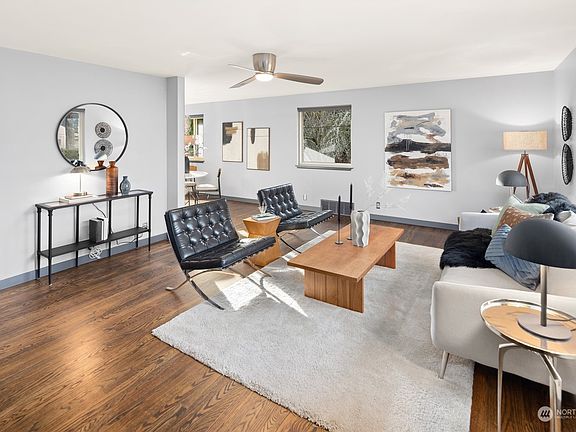 Begin your day with a peaceful outing to nearby Lincoln Park, weaving through forest trails before descending to the shoreline. Curl up in front of a crackling fire in the living room to enjoy a movie or a new favorite novel. Host friends in your expansive, fully fenced back yard and relish the abundant privacy and serenity in the wooded space. This mid-century gem exudes timeless charm with thoughtful updates for modern comfort. Refinished hardwood floors, A/C and a stylish breakfast bar in the remodeled kitchen are just a few excellent details to mention. This Arbor Heights home is ready to welcome its next owner to a place where character meets convenience, and every detail invites you to feel right at home. Winsome. Welcoming. Wooded.
