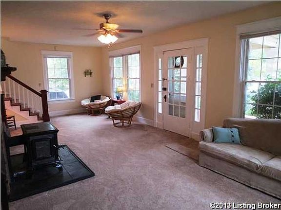 Enjoy the benefits of this urban homestead in a great location minutes from the Louisville Zoo, Joe Creason Park and George Roger Clark Park. This 2 story Dutch colonial house is a spacious 1680 sq ft and features four upstairs bedrooms and updated bathroom. Large replacement windows throughout. A beautiful soapstone wood-burning stove in the living room creates cozy winter evenings and has the ability to heat the entire home. Other updates include new carpet, fresh paint, updated light fixtures, new insulation and two remodeled closets. Brand new siding and roof with transferable warranty. The large lot (1/3 acre) has been made into a fruitful organic mini-farm with over 1800 sq ft of no-till amended garden plots and a perennial herb raised bed. Raspberry, blackberry, and blueberry bushes are planted along the edges of the yard, with apple trees along the driveway. A large walk-in chicken coop and run is located in the far back corner of the property. Six foot privacy fencing around the entire backyard. A circular drive around the rear of the house allows for ample parking. The garden shed and 2.5 car garage (wood stove heated) provide all the storage space you might need.
