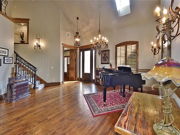 This 4 bedroom, 3 full, 2 half bathroom home in Twin Bridges has been immaculately maintained. Fresh paint & updated carpet throughout! The entry boasts 20 foot ceilings and gorgeous wood floors. Beautiful herringbone wood floor in the main living makes for a unique touch. There are granite counter tops in the kitchen, all bathrooms, and in the upstairs bonus. Also upstairs is a theater room, bar area, and half bath - great for family living/entertaining. There is tons of storage space throughout the home and a walkout attic upstairs for more storage. Step into the peaceful backyard complete with a covered patio with vaulted ceiling, a beautiful pool with water features, an outdoor kitchen, and a fireplace. Neighborhood amenities include: playground and pool, workout center, and walking trails. All of this just minutes away from I35, downtown Edmond, & the new Edmond Entertainment area. Set up a showing today!