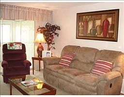 Light and bright. Immaculate 2 bedroom 2 bath corner unit has no rear neighbors. This condo features kitchen with built in microwave, smooth top range & additional wall of cabinets. Dining room has a beautiful custom wall unit which will stay. Split bedroom floor plan with Master Bedroom having its own private bathroom redone in 2005 with Bath Fitters. The Master Bedroom is large enough to hold a king size bed, dresser, 2 night stands and a hutch with plenty of room to spare along with a cedar lined walk-in closet. Wall of windows in the Florida Room lets in lots of light and the beautiful natural surroundings, has HVAC with sq.ft. not on tax records. Florida Room includes cable, ceiling fan, additional storage, full size washer & dryer hidden behind raised panel bi-fold doors. Access the Florida Room through sliding glass doors from the living room & from the master bedroom. Hurricane windows throughout,installed in 2004, & can be tilted in for easy cleaning. More features; ceiling fans in each room, attic access w/built in ladder for storage. The community features an active Clubhouse,community pool and their own bus service. Don't let this Florida lifestyle pass you by.