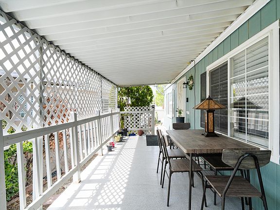 Welcome to this cozy mobile home right on Rosamond Blvd. You enter property through lovely front yard enclosed by a chain link fence. Inside you're greeted with wood laminate flooring that flows from the living room through to the dining area and kitchen. The spacious living room feature a high ceiling, lots of natural light and a ceiling fan. The kitchen is roomy with lots of cabinets and countertops for the cook in the family. It has been updated with hard surface countertops that beautifully contrast with refinished cabinets. The master bedroom features a walkin closet and ensuite private bathroom. The layout offers ideal privacy, with the master bedroom located at one end and two additional bedrooms at the opposite side great for keeping guests or kids comfortably separated. All three bedrooms are carpeted. There are two full bathrooms: one in the hallway for guests and general use, and another in the master bedroom for added comfort and privacy. Just off the kitchen is a dedicated laundry room for added convenience. The walls feature a soft two-toned paint scheme that adds an inviting touch. This home features a central heat and air conditioning system as well as an evaporative cooler. There is a porch at the entry of the home as well as an awning on the other side to park your cars. At the back of the home, you'll find a shed perfect for storage. A lovely area to garden, cook outdoors, or host a party/get together. Don't miss out this sweet mobile home in Rosamond!!