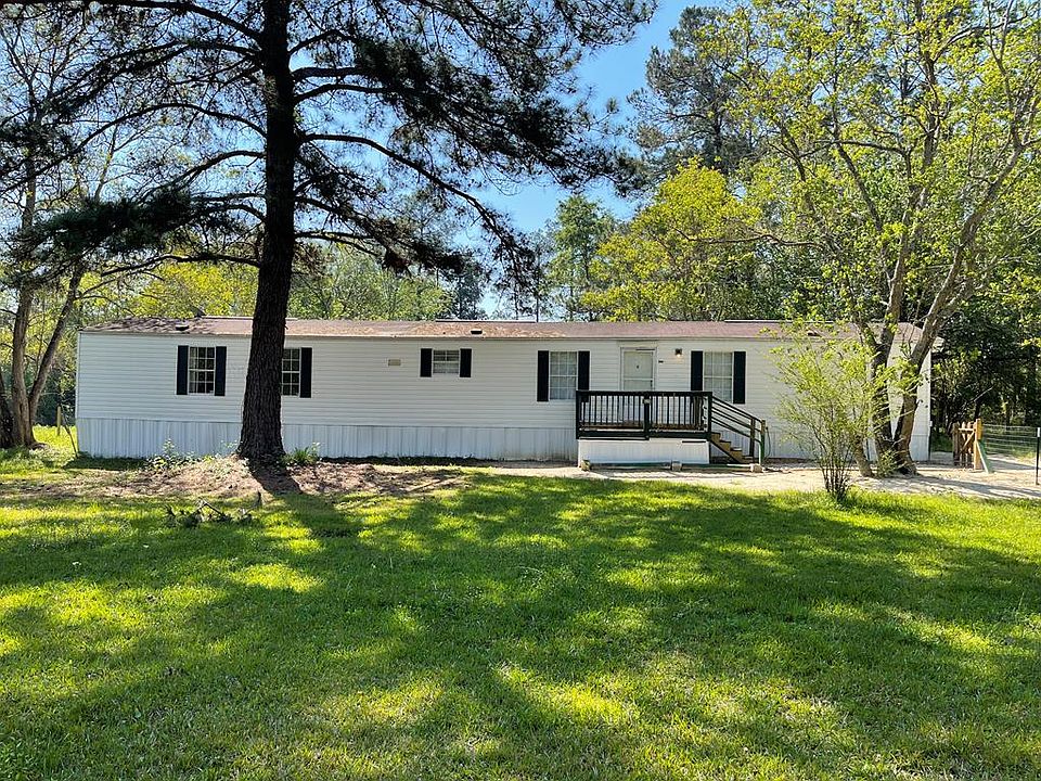 2 acres and a 4 bedroom 2 bath home with a fish pond and dock. Away from the city that has a woodsy feeling. Mobile home title has been retired. vacant and move in ready. New LVP installed in Great room