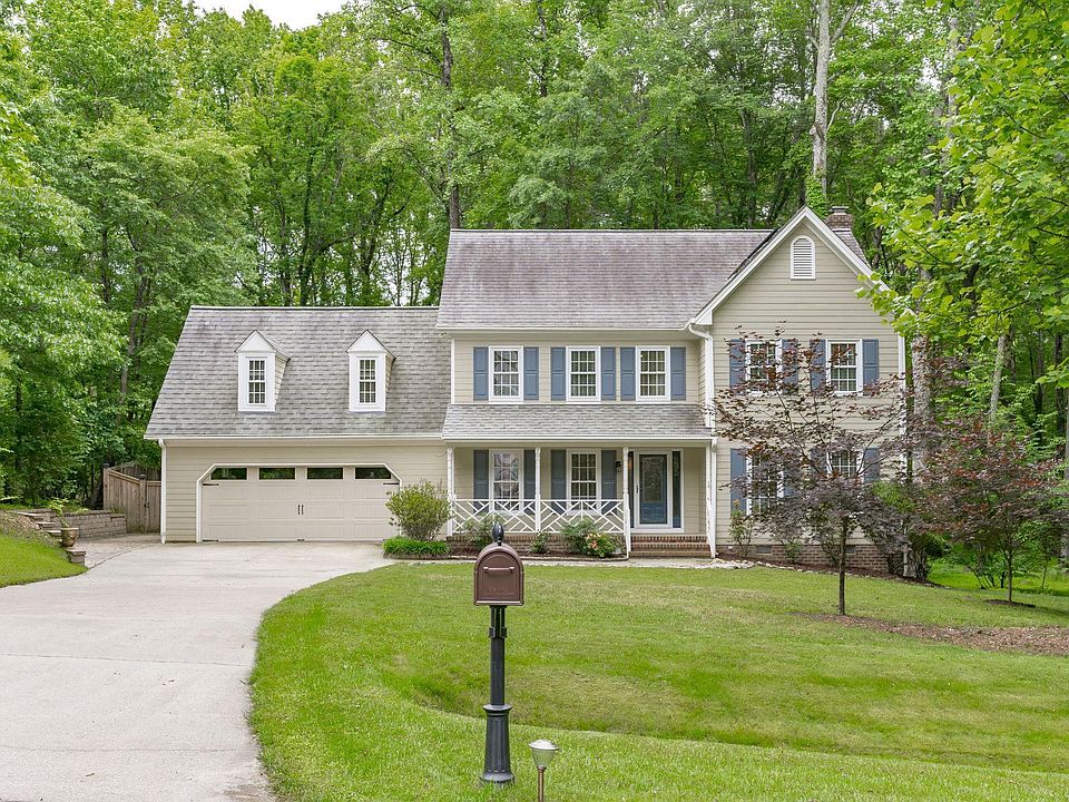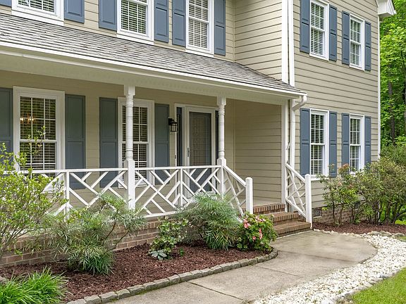 Phenomenal location on nearly an acre in Apex! This beauty has been lovingly cared with tons of upgrades. Super private lot that backs to trees and adjacent to large buffers of unbuildable land. Light filled sunroom, huge deck and new Belgard stone hardscaping, wood burning fireplace, solar panels, hardwood floors, recently renovated primary and secondary bathrooms, new exterior doors, new garage door, and kitchen herb window. Even mores space in the unfinished walk up attic that can be used for storage or can be finished to increase square footage/property value.