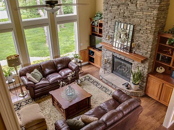 Superb quality and abundant amenities will make the new home owner satisfied for years to come. Live well in this low maintenance, energy efficient 1.5 story on finished basement with 4 car garage and .8-acre picturesque lot. Welcome summer on the screen porch with shaded, water views. Custom built in 2009, the list of attributes and features are in an attached document. Highlights include: beautiful hand-scraped wood laminate floors in the main floor, relaxing 4 season room off the breakfast area, main floor den, owner's en suite with tile walk-in shower and heated floors, chef's deluxe kitchen with cherry wood cabinets and granite counters. Anderson 400 series windows and zoned HVAC that has high efficiency variable speed furnace make living in all this space easy on the budget. Functional floor plan for daily living with terrific mud room and separate laundry room off the kitchen. Inviting design features for executive entertaining include generous great room with floor to ceiling stone fireplace, open dining room and easy flow to the sunroom and porch. Lower level rec room complete with wet bar plus a large unfinished area perfect for a workshop and storage area.