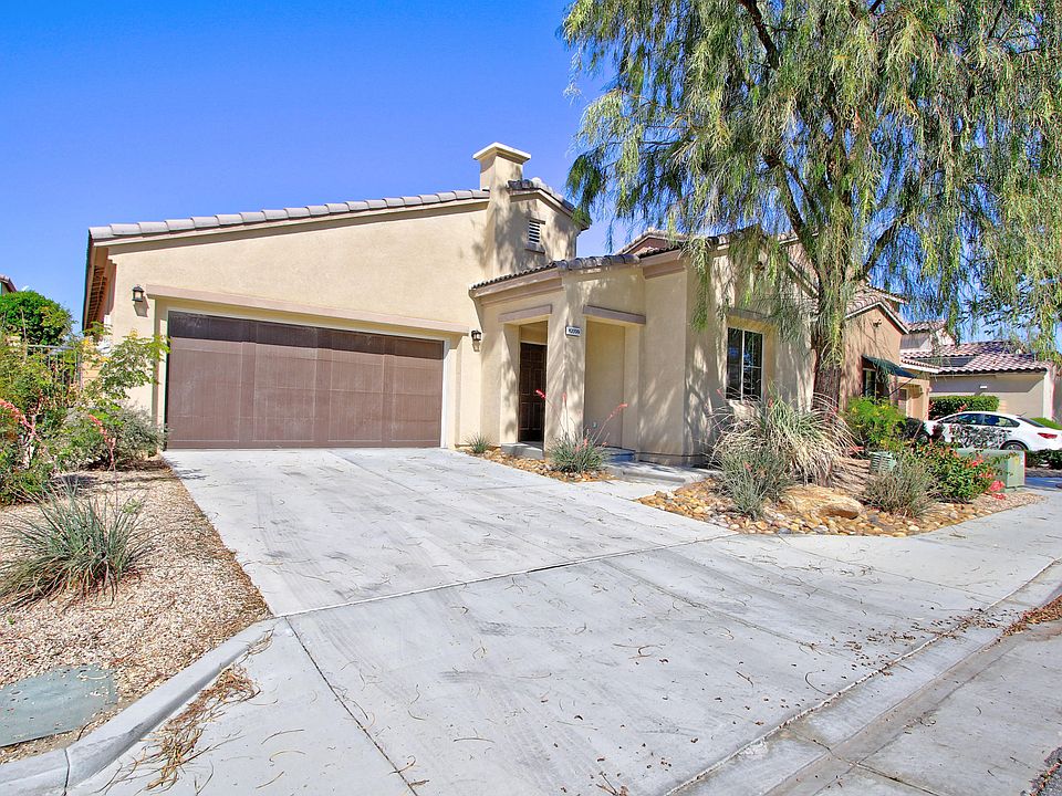 Shows like New Home - Interior Rehab - Move-In Ready - Vacant for Safe Showings - New Kitchen and Bath Counter Tops. Stainless Appliances. Great Single Level Open Floor-Plan steps out to private covered patio and walled low maintenance yard! Tile or Laminate Flooring throughout the living areas. In-door Laundry, direct access to Double Garage. Solar is built into the roof to lower electricity bills! Low Maintenance Yard! Falcon Crest Community of homes built in 2007 presents a uniform neighborhood with LOW HOA Dues that includes front Landscaping care. Convenient Palm Desert Location near High School and all to enjoy the Palm Desert Services and Lifestyle.
